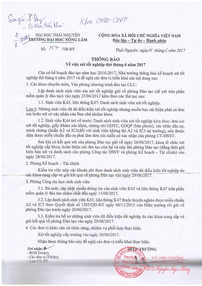 Thông báo về việc xét tốt nghiệp đợt tháng 6 năm 2017