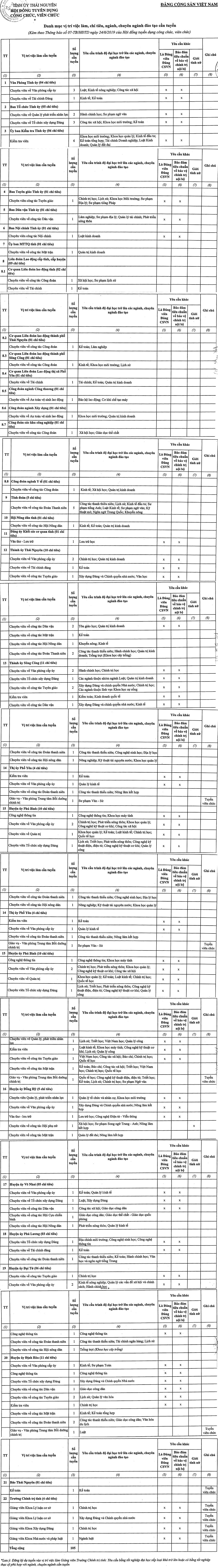 về việc tổ chức thi tuyển công chức, viên chức cơ quan Đảng, Mặt trận Tổ quốc và các tổ chức chính trị – xã hội tỉnh Thái Nguyên năm 2019.