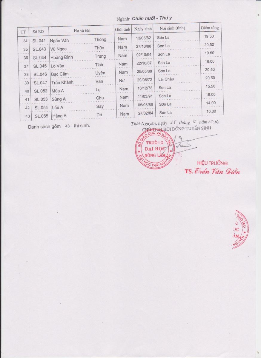 Quyết định trúng tuyển Đại học hệ VLVH ngành Chăn nuôi - Thú y